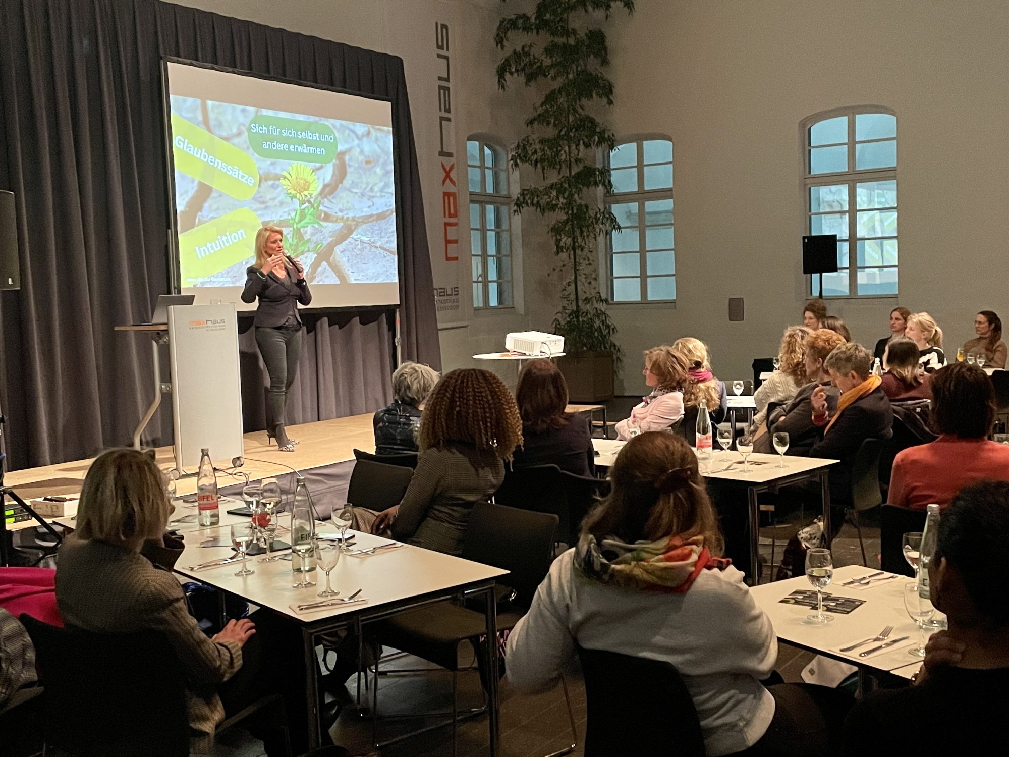 Claudia Kleinert, bekannt als die "Wetterfrau", aber viel mehr ein bekannter Medien und Business Coach hat sehr informativ über "Was ist Charisma?" gesprochen. Die Veranstaltung fand im Klosterhof vom Maxhaus in der Düsseldorfer Altstadt statt.