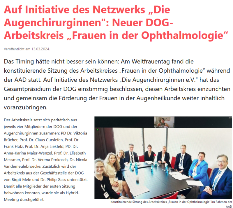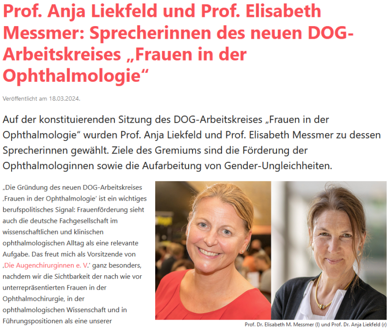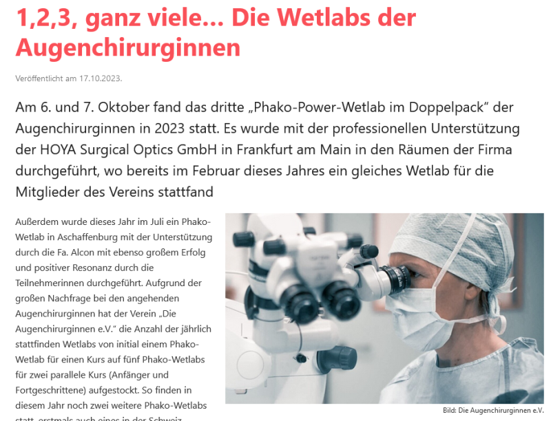 Pressemitteilung des Vereins „Die Augenchirurginnen e.V.“ im Oktober 2023