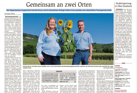 Die Heppenheimer Augenärztin Annette Brusis und ihr Bensheimer Kollege Stefan Grom gründen eine überörtliche Praxisgemeinschaft.