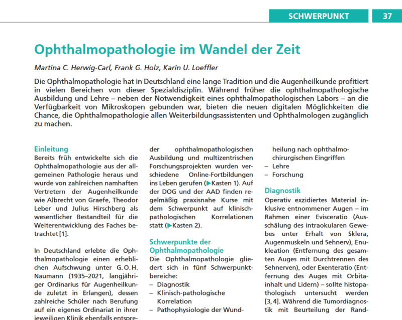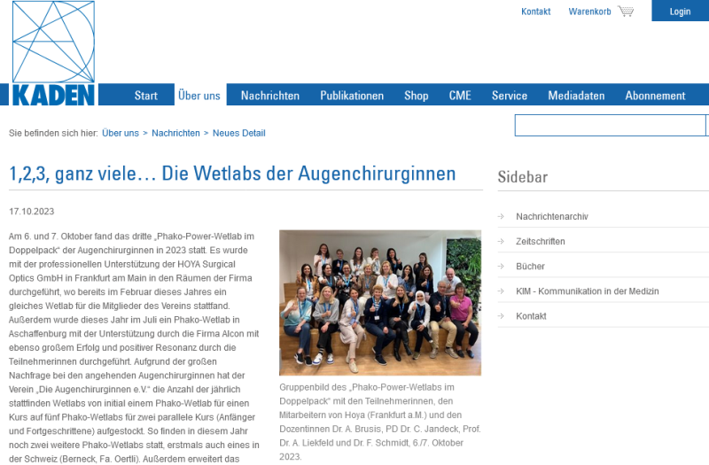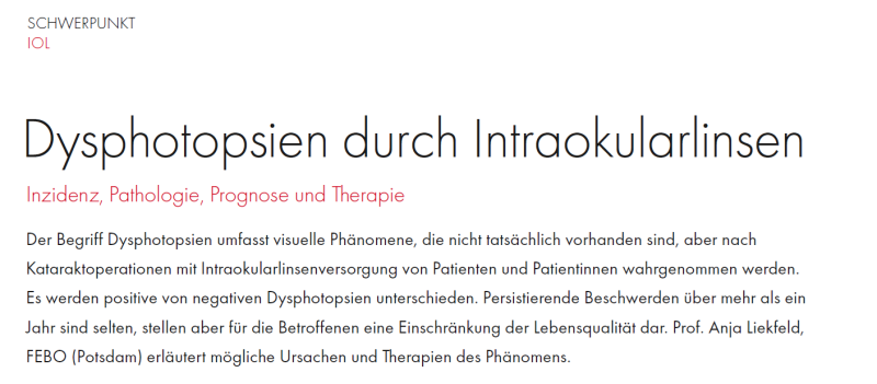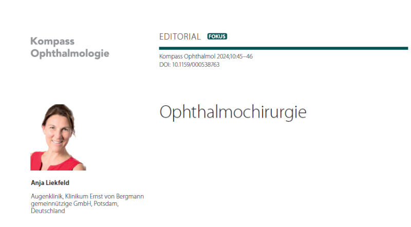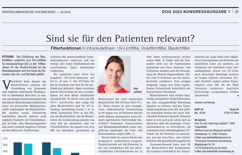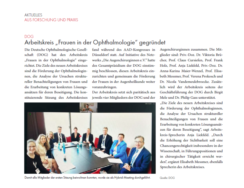 Pressemitteilung der Fachzeitschrift „ OPHTHALMOLOGISCHE NACHRICHTEN“ in der Ausgabe September 2023
