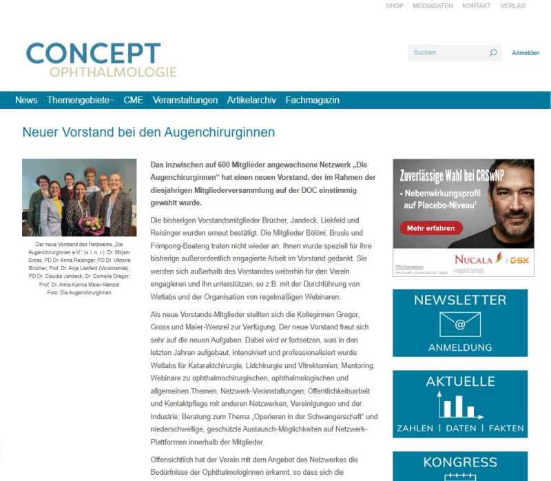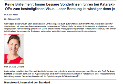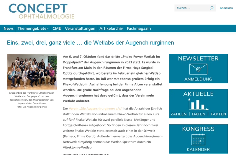 Pressemitteilung des Fachmagazins „Concept Ophthalmologie“ im Oktober 2023
