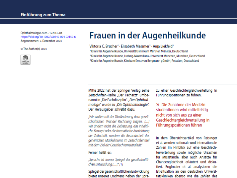 Frauen in der Ophthalmologie – Eine Bestandsaufnahme
