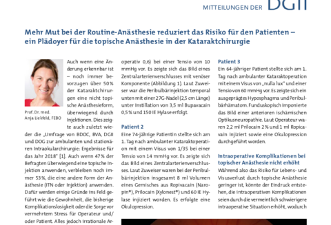 Mehr Mut bei der Routine-Anästhesie reduziert das Risiko für den Patienten, ein Plädoyer für die topische Anästhesie in der Kataraktchirurgie