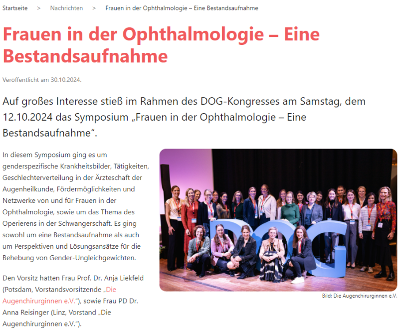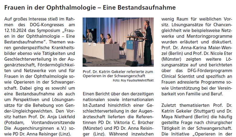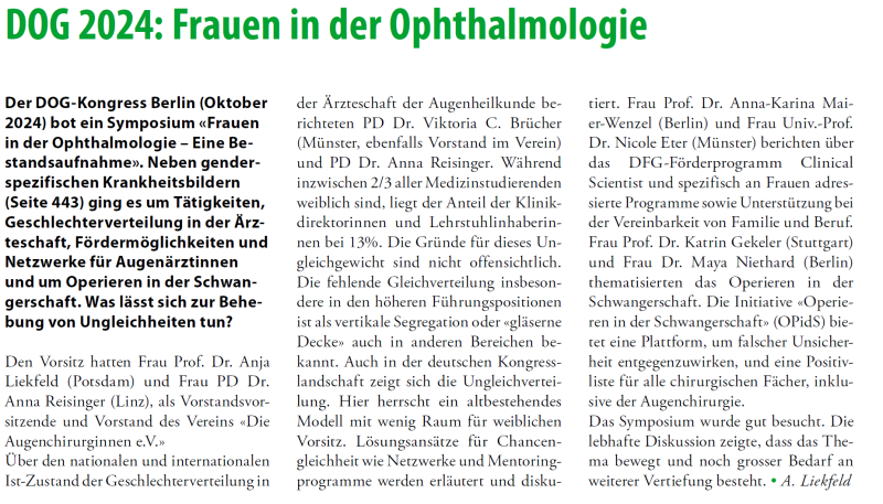 Der DOG-Kongress Berlin (Oktober 2024) bot ein Symposium «Frauen in der Ophthalmologie – Eine Bestandsaufnahme