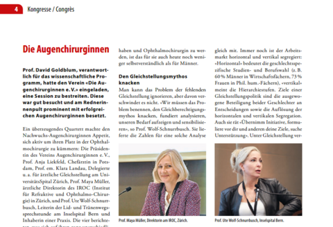 ». Neben genderspezifischen Krankheitsbildern (Seite 443) ging es um Tätigkeiten, Geschlechterverteilung in der Ärzteschaft, Fördermöglichkeiten und Netzwerke für Augenärztinnen und um Operieren in der Schwangerschaft. Was lässt sich zur Behebung von Ungleichheiten tun?