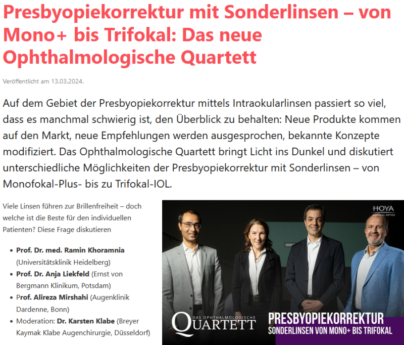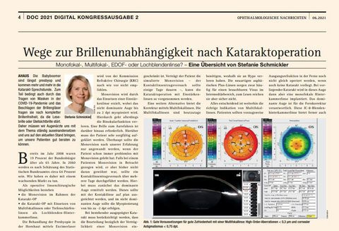 Wege zur Brillenunabhängigkeit nach Kataraktoperation, Ophthalmologische Nachrichten