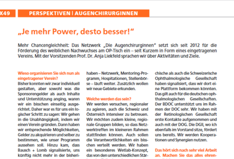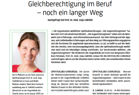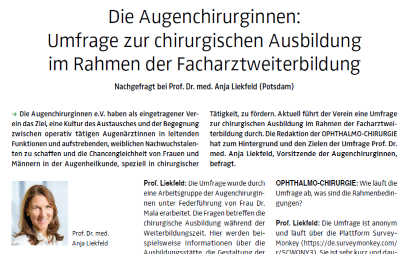 Die Redaktion der OPHTHALMO-CHIRURGIE hat zum Hintergrund und den Zielen der Umfrage Prof. Dr. med. Anja Liekfeld, Vorsitzende der Augenchirurginnen, befragt.