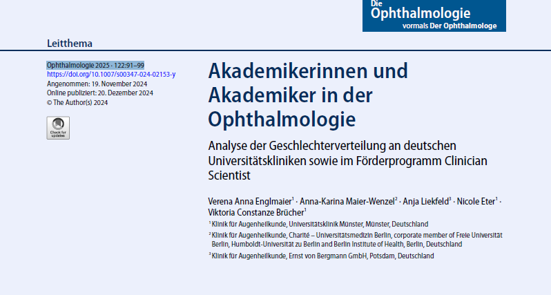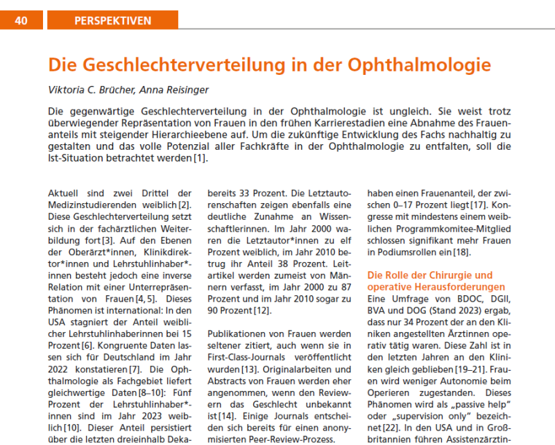 Die oberärztlichen Positionen und die Positionen der Klinikdirektor* innen an den Universitätsaugenkliniken werden weiterhin überwiegend vom männlichen Geschlecht bekleidet. Auch werden Förderprogramme für wissenschaftlichen Nachwuchs noch in der Mehrzahl an Männer vergeben.