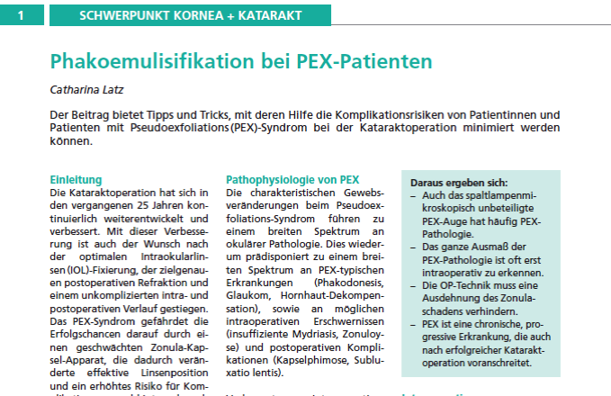 Phakoemulisifikation bei PEX-Patienten