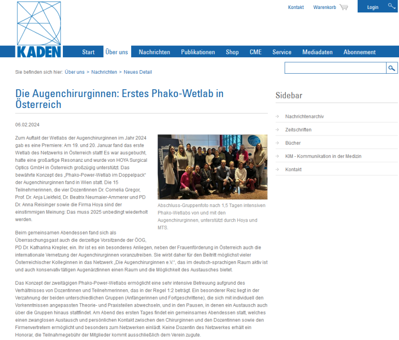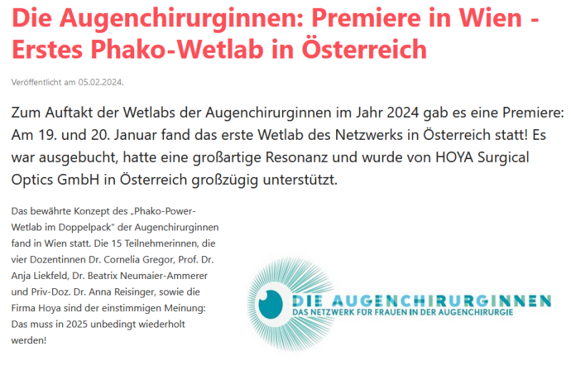 Die Augenchirurginnen: Premiere in Wien - Erstes Phako-Wetlab in Österreich