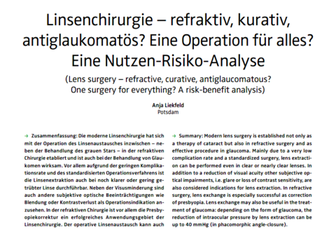 Linsenchirurgie, refraktiv, kurativ, antiglaukomatös? Eine Operation für alles?