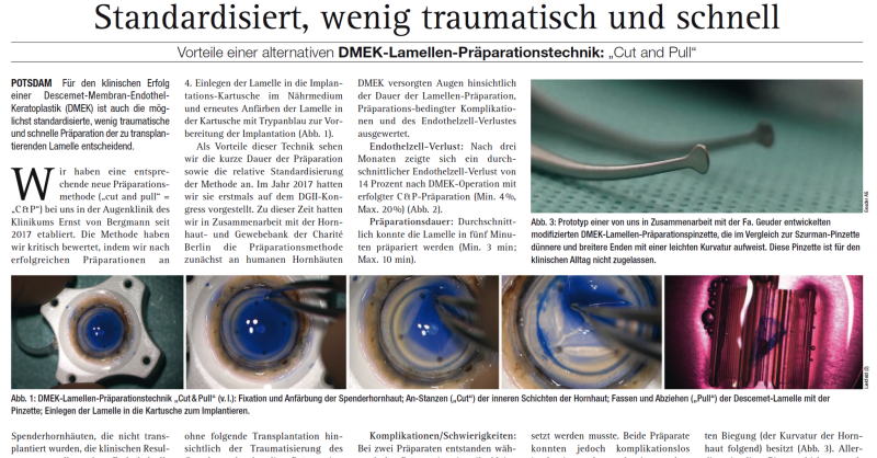 Standardisiert, wenig traumatisch und schnell Vorteile einer alternativen DMEK-Lamellen-Präparationstechnik: „Cut and Pull“