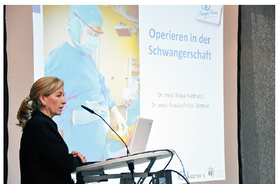 Mit diesem Vortrag leitete Dr. Frauke Fritze-Büttner (Berlin) die Netzwerkveranstaltung ein und gab einen kompakten Überblick zu zentralen Fragen wie „Wann erzähle ich es meinem Chef?“ und „Wie lange und unter welchen Voraussetzungen darf ich während der Schwangerschaft operieren?“.