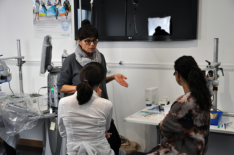 Die Voraussetzungen für den Komplikations-Management-Kurs (Kurs 2) waren dagegen höher gesteckt. Mindestens fünfzig Kataraktoperationen hatten die zehn Kursteilnehmerinnen bereits selbständig durchgeführt. Nach einer kurzen Wiederholung zum Thema Standardkataraktoperation zum Einstieg folgte in den eineinhalb Kurstagen eine intensive theoretische wie praktische Auseinandersetzung mit den verschiedensten Komplikations- und Sondersituationen, die einem im Operationsalltag begegnen können.